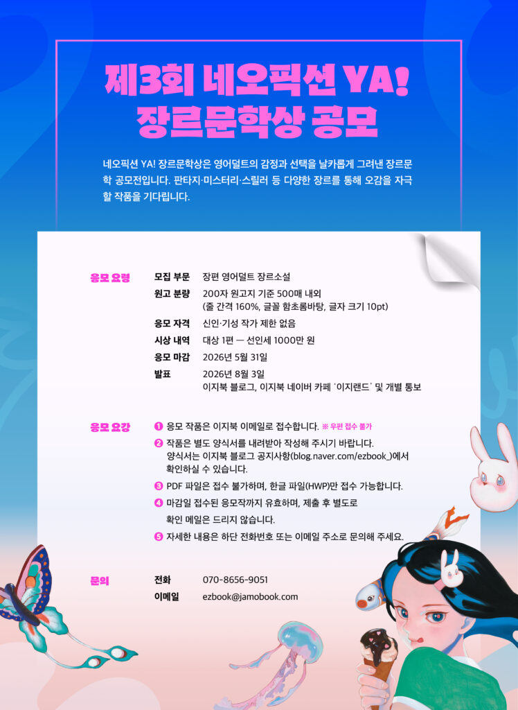 네오픽션 YA! 장르문학상은 영어덜트의 감정과 선택을 날카롭게 그려낸 장르문학 공모전입니다.